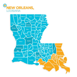 The overall Greater New Orleans Metropolitan area includes the big three: Jefferson, Orleans, and St. Tammany, but you can also include Washington, Plaquemines, St. Charles, St. John the Baptist, and St. Bernard.